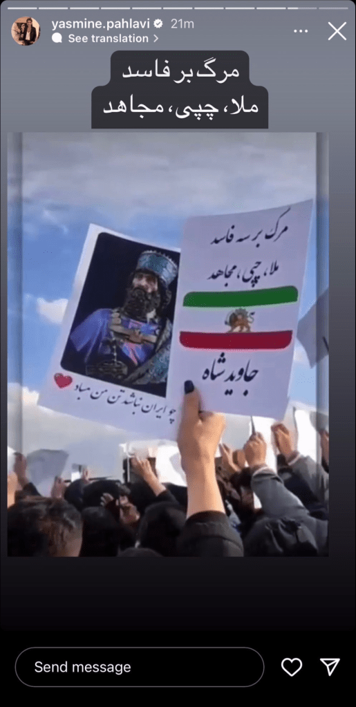 - Jan 5, 2023 — Priming. Yasmine Pahlavi posts “Death to… mojahed (MEK)” (Doc 1)